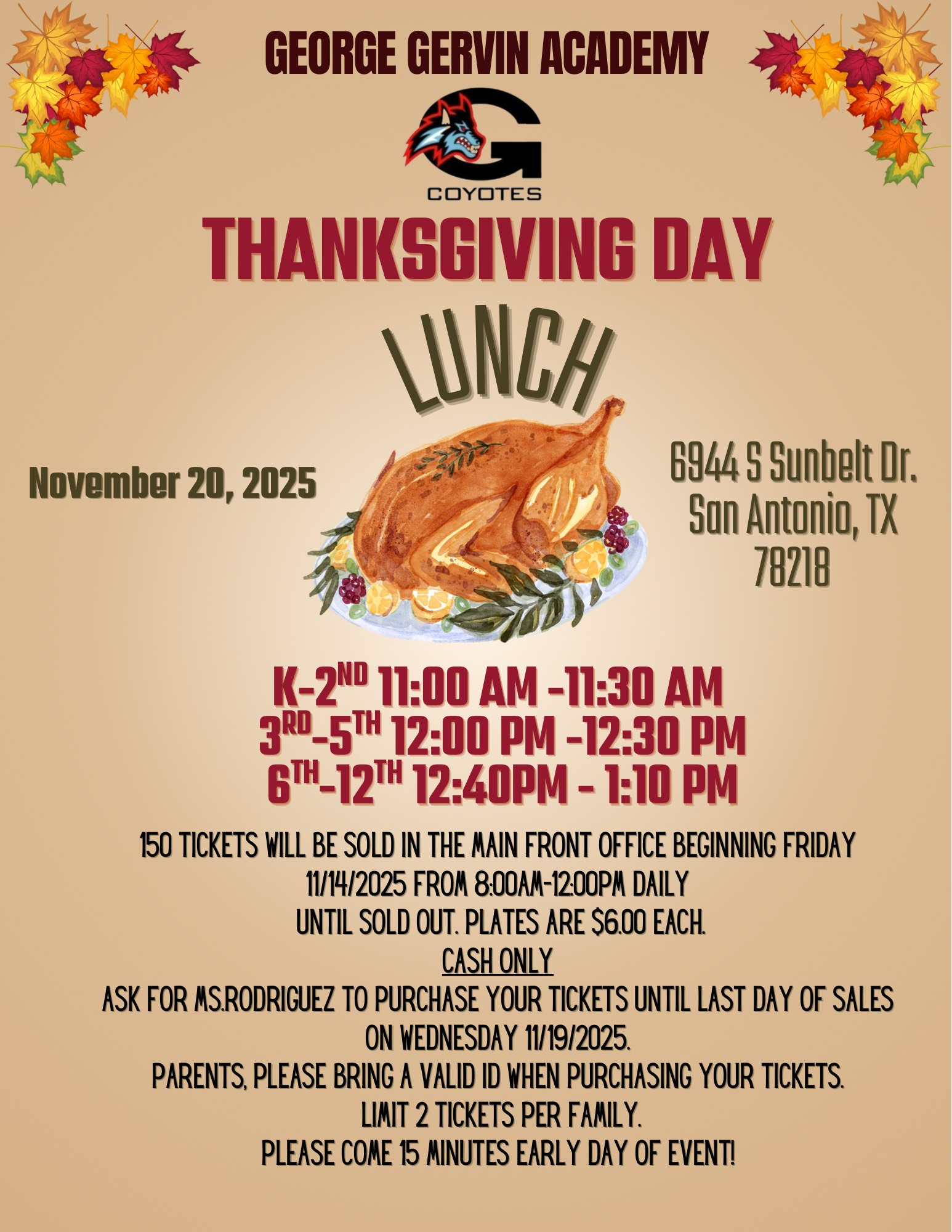 Thanksgiving Day Lunch/Almuerzo del Día de Acción de Gracias